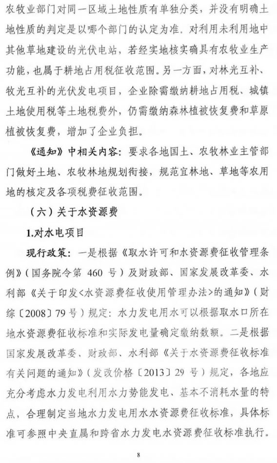 近日,國(guó)家能源局綜合司下發(fā)了關(guān)于征求對(duì)《關(guān)于減輕可再生能源領(lǐng)域涉企稅費(fèi)負(fù)擔(dān)的通知》(以下簡(jiǎn)稱《通知》)意見(jiàn)的函。為切實(shí)減輕可再生能源企業(yè)增值稅稅負(fù),《通知》強(qiáng)調(diào),對(duì)納稅人銷售自產(chǎn)的利用太陽(yáng)能生產(chǎn)的電力產(chǎn)品,實(shí)行增值稅即征即退50%的政策,從2018年12月31日延長(zhǎng)到2020年12月31日。 值得注意的是,《通知》明確,各地方政府一律不得向可再生能源投資企業(yè)收取沒(méi)有法律依據(jù)的資源出讓費(fèi)等費(fèi)用,不得將應(yīng)由各級(jí)政府承擔(dān)投資責(zé)任的社會(huì)公益事業(yè)投資轉(zhuǎn)嫁給可再生能源投資企業(yè)或向其分?jǐn)?,不?yīng)強(qiáng)行要求可再生能源投資企業(yè)提取收益扶貧。已經(jīng)向風(fēng)電、光伏發(fā)電、光熱發(fā)電等可再生能源開發(fā)投資項(xiàng)目收取資源出讓費(fèi)(或有償配置項(xiàng)目)的地方政府,應(yīng)在通知發(fā)布一年內(nèi)完成清退。 此外,《通知》中指出,各類可再生能源發(fā)電項(xiàng)目的外部配套及輸配電工程,全部由所在地電網(wǎng)企業(yè)投資建設(shè),以往相關(guān)電網(wǎng)工程由可再生能源發(fā)電項(xiàng)目單位投資建設(shè)的,電網(wǎng)企業(yè)按協(xié)議或經(jīng)第三方評(píng)估在兩年內(nèi)完成回購(gòu)。電網(wǎng)企業(yè)配套可再生能源項(xiàng)目的接網(wǎng)及輸配電工程全部計(jì)入所在省級(jí)電網(wǎng)輸配電價(jià)核定的成本范圍。 針對(duì)光伏企業(yè),《通知》規(guī)定:1、光伏發(fā)電產(chǎn)品增值稅即征即退50%的政策,從2018年12月31日延長(zhǎng)到2020年12月31日;2、光伏發(fā)電項(xiàng)目占用耕地,對(duì)光伏陣列不占?jí)和恋亍⒉桓淖兊乇硇螒B(tài)的部分,免征征地占用稅;3、在城市、縣城、建制鎮(zhèn)、工礦區(qū)范圍內(nèi)使用土地建設(shè)的光伏發(fā)電項(xiàng)目,由省級(jí)政府核定起征標(biāo)準(zhǔn),偉大建制鎮(zhèn)規(guī)模以及不在建制鎮(zhèn)規(guī)劃內(nèi)的土地上建設(shè)的,不征收城鎮(zhèn)土地使用稅;達(dá)到城鎮(zhèn)土地使用稅起征標(biāo)準(zhǔn)的,對(duì)光伏陣列不占?jí)和恋?、不改變地表形態(tài)的部分,不計(jì)入占用土地面積,免繳城鎮(zhèn)土地使用稅。4、各類可再生能源發(fā)電項(xiàng)目的外部配套及輸配電工程,全部由所在地電網(wǎng)企業(yè)投資建設(shè),以往相關(guān)電網(wǎng)工程由可再生能源發(fā)電項(xiàng)目單位投資建設(shè)的,電網(wǎng)企業(yè)按協(xié)議或經(jīng)第三方評(píng)估在兩年內(nèi)完成回購(gòu)。電網(wǎng)企業(yè)配套可再生能源項(xiàng)目的接網(wǎng)及輸配電工程全部計(jì)入所在省級(jí)電網(wǎng)輸配電價(jià)核定的成本范圍。5、各地要鼓勵(lì)銀行等金融機(jī)構(gòu)降低貸款利率,對(duì)達(dá)到優(yōu)質(zhì)信貸等級(jí)的可再生能源項(xiàng)目投資企業(yè),鼓勵(lì)按基準(zhǔn)利率下浮10%左右的利率予以支持,并可對(duì)可再生能源發(fā)電項(xiàng)目適當(dāng)延長(zhǎng)貸款期限并給予還貸靈活性。 關(guān)于生物質(zhì)能發(fā)電的調(diào)整,《通知》指出:現(xiàn)行政策是根據(jù)財(cái)政部、國(guó)家稅務(wù)總局《關(guān)于在部分行業(yè)試行農(nóng)產(chǎn)品增值稅進(jìn)項(xiàng)稅額核定扣除辦法的通知》(財(cái)稅[2012]38號(hào))規(guī)定,以購(gòu)進(jìn)農(nóng)產(chǎn)品為原料生產(chǎn)銷售液體乳及乳制品、酒及酒精、植物油的增值稅一般為納稅人,納入農(nóng)產(chǎn)品增值稅進(jìn)項(xiàng)稅額核定扣除試點(diǎn)范圍。調(diào)研發(fā)現(xiàn),目前生物質(zhì)能項(xiàng)目燃料大部分通過(guò)經(jīng)紀(jì)人代理收購(gòu),直接收購(gòu)僅占一小部分。一方面,代開發(fā)票稅率較高,另一方面,直接收購(gòu)方式較難取得合格增值稅發(fā)票,導(dǎo)致增值稅抵扣具體落實(shí)存在困難?!锻ㄖ分邢嚓P(guān)內(nèi)容明確將生物質(zhì)能發(fā)電納入農(nóng)產(chǎn)品增值稅進(jìn)項(xiàng)稅額核定扣除試點(diǎn),有望起到改善作用。 為加快推動(dòng)建立綠色金融體系,降低企業(yè)融資成本,《通知》還強(qiáng)調(diào),各地要鼓勵(lì)銀行等金融機(jī)構(gòu)降低貸款利率,對(duì)達(dá)到優(yōu)質(zhì)信貸等級(jí)的可再生能源項(xiàng)目投資企業(yè),鼓勵(lì)按基準(zhǔn)利率下浮10%左右的利率予以支持,并可對(duì)可再生能源發(fā)電項(xiàng)目適當(dāng)延長(zhǎng)貸款期限并給予還貸靈活性。 以下為征求意見(jiàn)函原文: